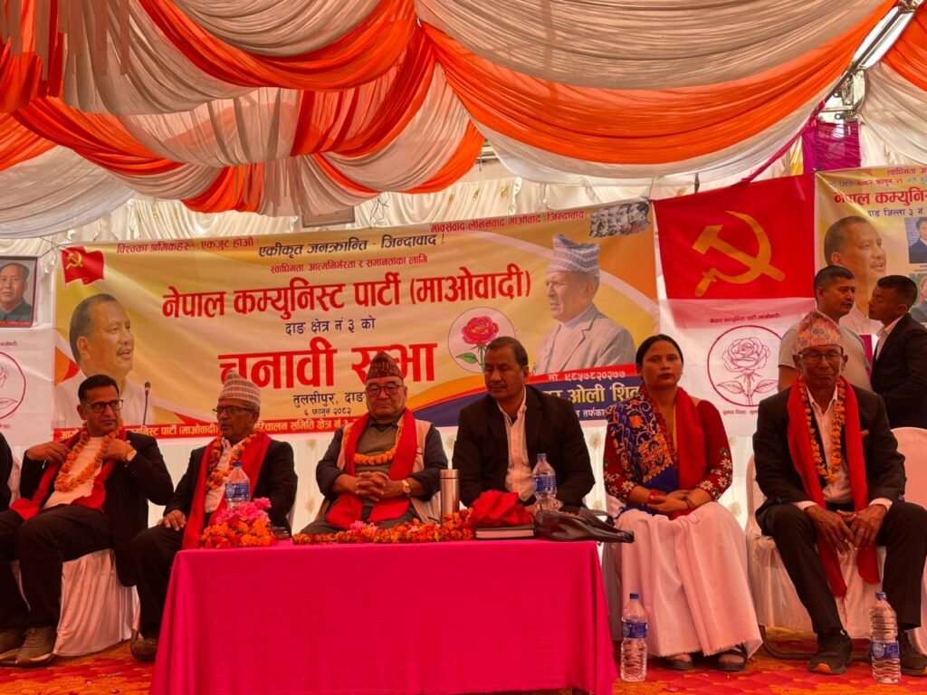 चुनावी सभा कार्यक्रममा नेकपा (माओवादी)का दाङ -३ का समानुपातिक उम्मेदवार कान्छी चौधरी (जीवनी), पार्टीका पार्टीका स्थायी समिति सदस्य तथा लुम्बिनी प्रदेश इन्चार्ज सन्तोष सी (विषम), पार्टीका केन्द्रीय सदस्य तथा दाङ जिल्ला इन्चार्ज सबिन सी लगायतले सम्बोधन गर्नुभएको थियो।