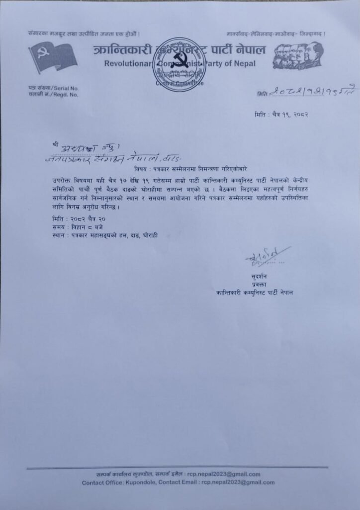 कार्यक्रममा सञ्चारकर्मीहरूको उपस्थितिका लागि पार्टीले अनुरोध गरेको छ।